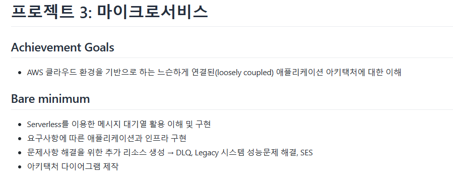 이번 프로젝트는 Code source가 충분히 제공 되어 Logic 구현보다 마이크로서비스 구현에 더 집중 할 수 있었다. (DB 등등) 프로젝트를 진행하면서 느낀것 중 하나가 생성하는 서비스의 이름을 최대한 간단명료하고 통일성 있게 지어야 해야할 필요성을 느꼈다. 어차피 프레임워크에서 만들어서 배포할건데 무슨 상관인가 했지만, 결국엔 AWS 콘솔로 들어가서 문제를 해결해야하는 상황이 오는데, 이 때 만들어놓은 이름들이 너무 중구난방이라 찾기 힘들었다... (최대한 간단하고 알아보기 쉽게!!)